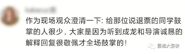 然而,有多位现场观众澄清,现场氛围并不是网传的那样,观众鼓掌是因为听到导演和成龙诚恳的回复才鼓掌的。