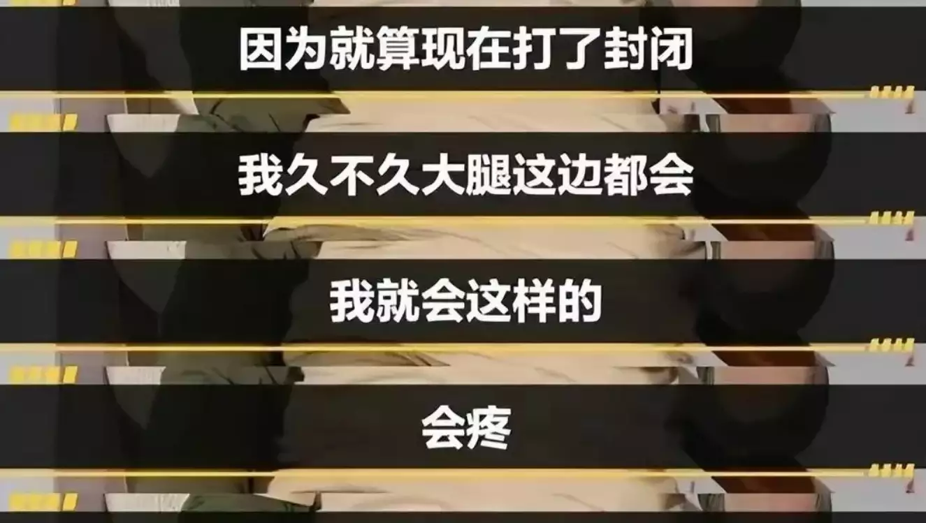 他又说:“我时不时大腿,肩膀,腰都会感到疼,工作时打了两次封闭针,如果再打第三针他们说骨头会变脆,再下来就得动手术了”。又预计自己“接下来可能要坐在轮椅上独享晚年”。