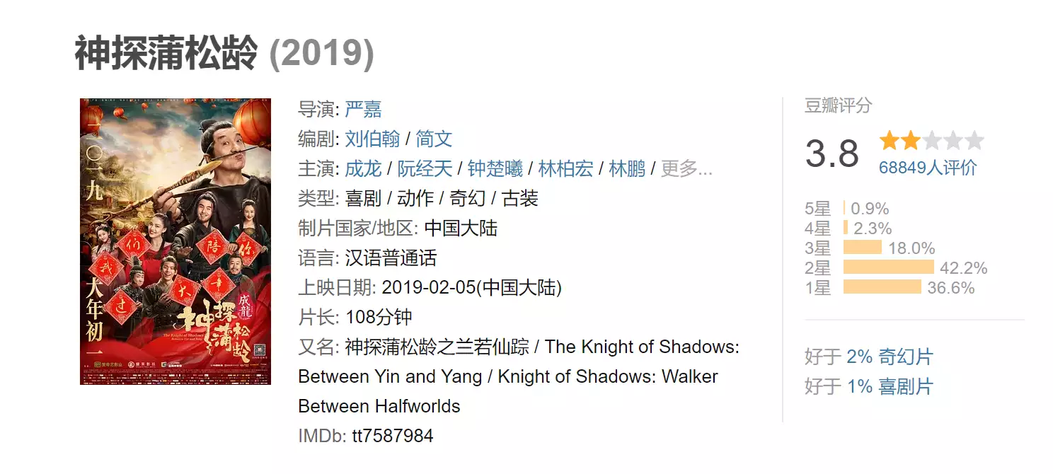 而且他也不是首度“转型”了,《英伦对决》《神探蒲松龄》《神话》都是他的转型之作,这里面除了《神话》成了穿越影片的标杆外,其他影片的浪花都不大。