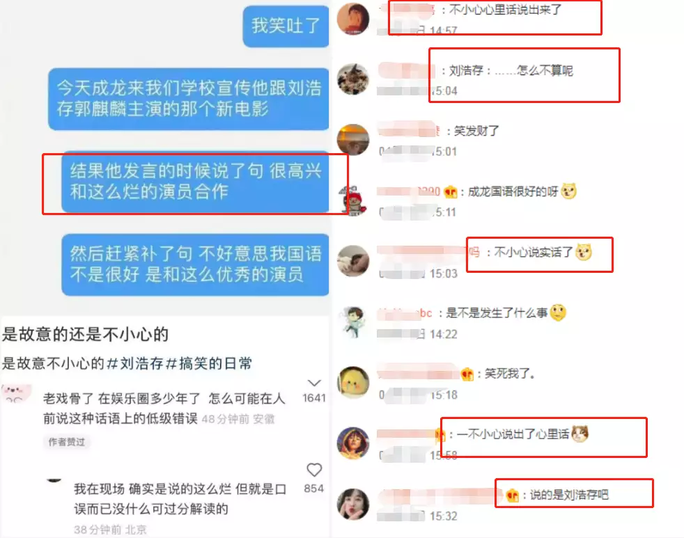 甄子丹等数人龙马精神从早到晚预演,到数十家Argenton,戏剧学院宣传品,甚至连北京大学都去做宣传品,还即使不留神信口开河,在讲话时称成了很开心和那么烂的女演员合作,引起许多网民的轩然大波,网民称,白白讲出了心声,说的是刘浩存吧。
