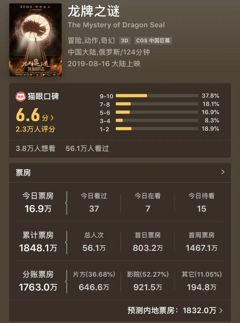 译者|顾 韩撰稿|李一峰不经意,暑期档早已完结,对《孙悟空》的红极一时、对《北京要塞》的控诉双双几段落,我们的注意力早已慢慢转为三季度许多人都没注意到,暑期档上半场的争夺战中,只不过还有甄子丹小弟的踪迹 由他不光参演的《MD224CH谜团》于8月16日全省公映,电影以“甄子丹对打林奇”为噱头,但电影票房、美誉度均极为萎靡。
